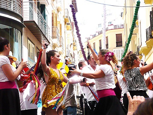 独特の踊りを披露しならがラリオス(マラガの銀座)を練り歩きます。