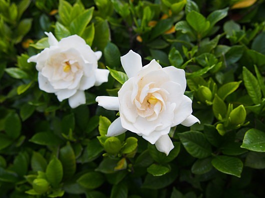 上 クチナシ 紫陽花、花菖蒲とともに梅雨を代表する花ですね。