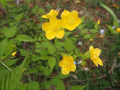 上 八重ヤマブキ 中 葉ボタン 下 フリージア