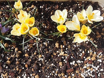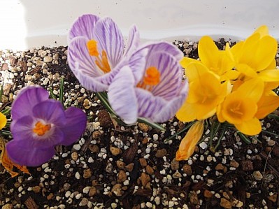 関ヒマ様の所のクロッカスは元気に咲いていますね。家のは日当たりがよくないのか、まだ芽が少し出ているだけです。もう少し花が咲くまで時間がかかりそうです。