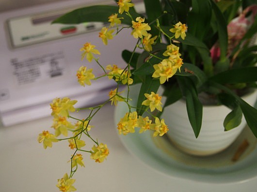 花弁が全部そろって、葉の緑と黄色の花のコントラストが美しいです。