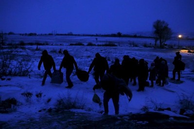 下三枚に写真は、今年の真冬に氷ついたマケドニア農地を難民がセルビアに向かい歩いてる様子、ロイター通信 http://www.reuters.com/news/picture/a-migrants-winter-walk?articleId=USRTX22XFT からです。