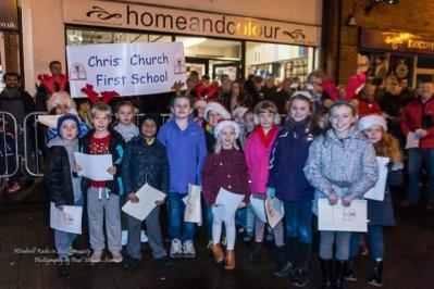 最初と二番目は、今年11月20日にクリスマス・ライトが点けられるというので見に来た小学校の子供達、