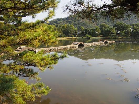 ここは和歌山市の中心からだいぶ外れたところにあり、平日だったこともあってか、見物人は我々一行だけでした。静寂そのものの約1万坪の庭園を独り占めにしたような贅沢な殿様気分をあじあわせていただきました。