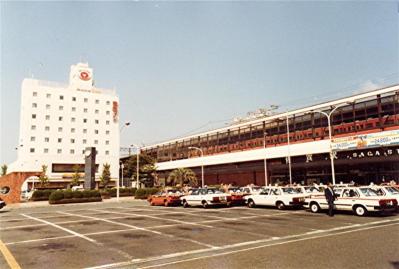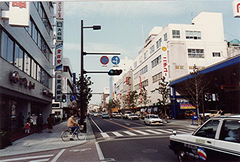 2番目で左にある看板は「大信販」「全日空」「東急観光」、右には「ニチユー」とあり多分唐人町でしょう。