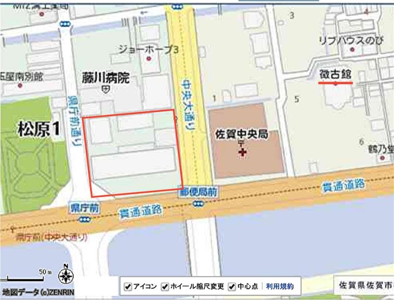 右上に赤線を引いてある「微古舘」は公益財団法人・鍋島報效会というのがあり、鍋島藩の歴史博物館みたいです。