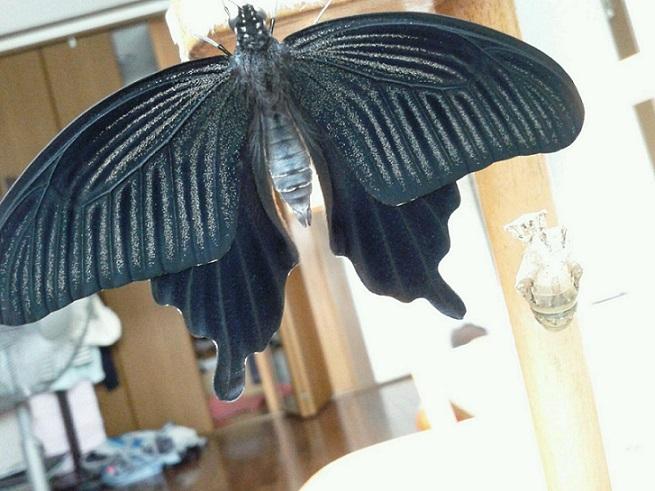 9月初めなのに涼しいですね。先日のくろあげはの幼虫が今朝羽化しました。