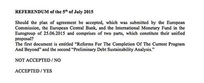 2015年6月25日にヨーロッパ委員会、ヨーロッパ中央銀行、IMFからの提案(要求)は2部に纏められる。