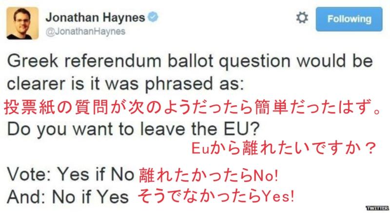 ギリシャ国民投票紙の質問について、ツウィッター・コメントの続きです。