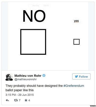 二番目はツィプラス首相がNoを押してるので、このようなデザインにすべきだったとか。
